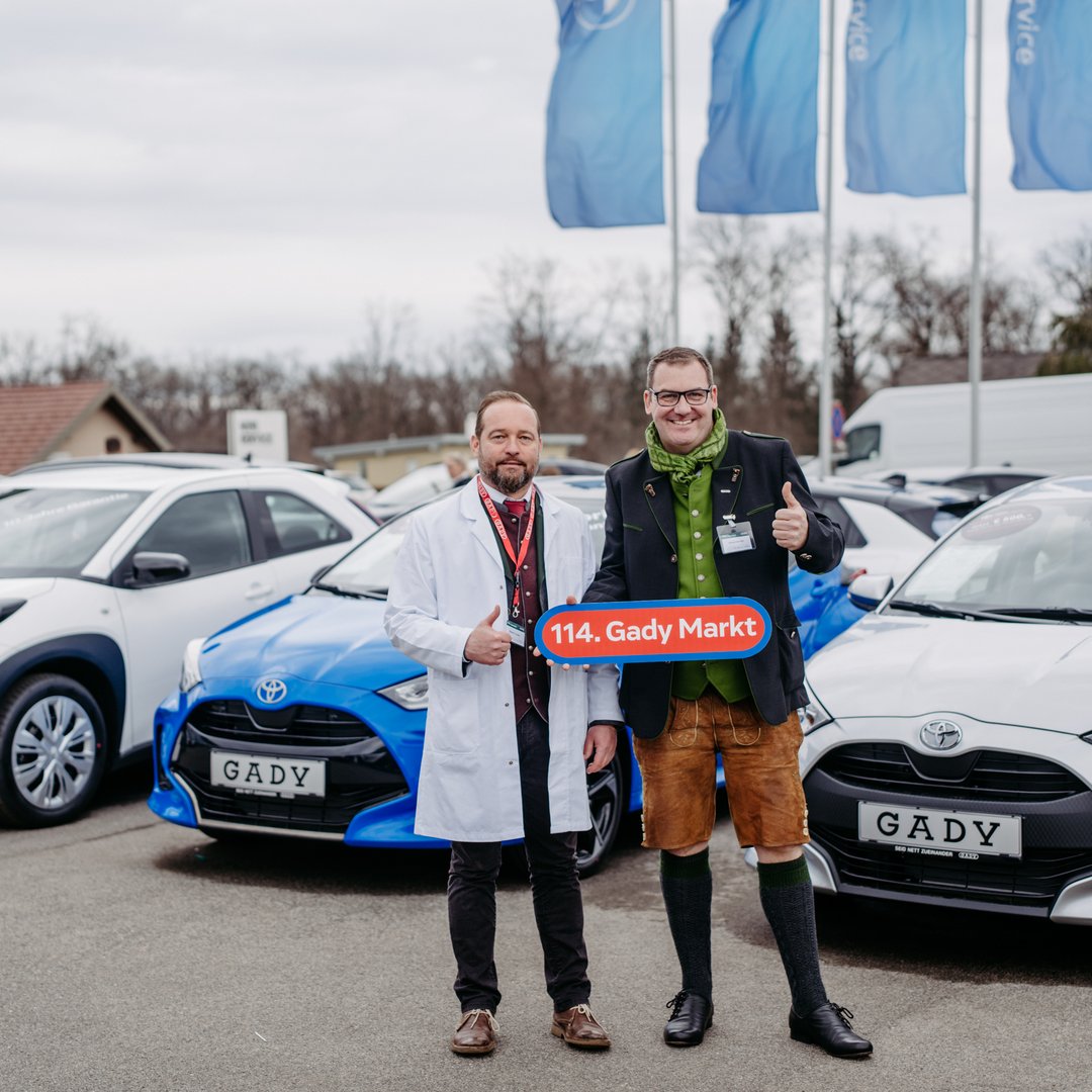 Erleben. Einsteigen. Durchstarten. Egal, ob eingefleischter BMW-Fan oder begeisterte Toyota-Liebhaberin – beim Gady Markt kommt jeder auf seine Kosten. Unser Team freut sich auf Ihren Besuch!