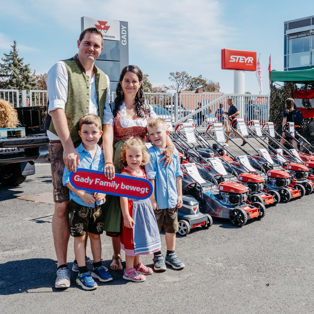 Seit jeher sind wir mit voller Kraft dabei: Beim Gady Markt präsentieren wir unsere starken Partner – Steyr, Massey Ferguson, Amazone, Farmtech und Giant – und zeigen modernste Technik für Feld und Hof.